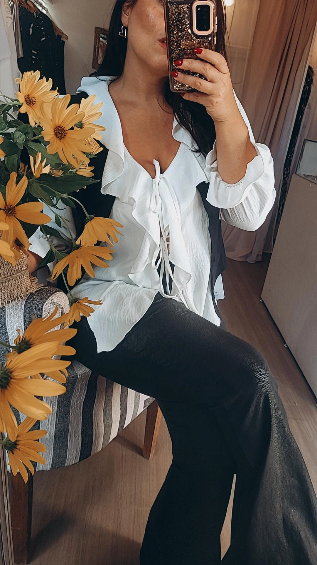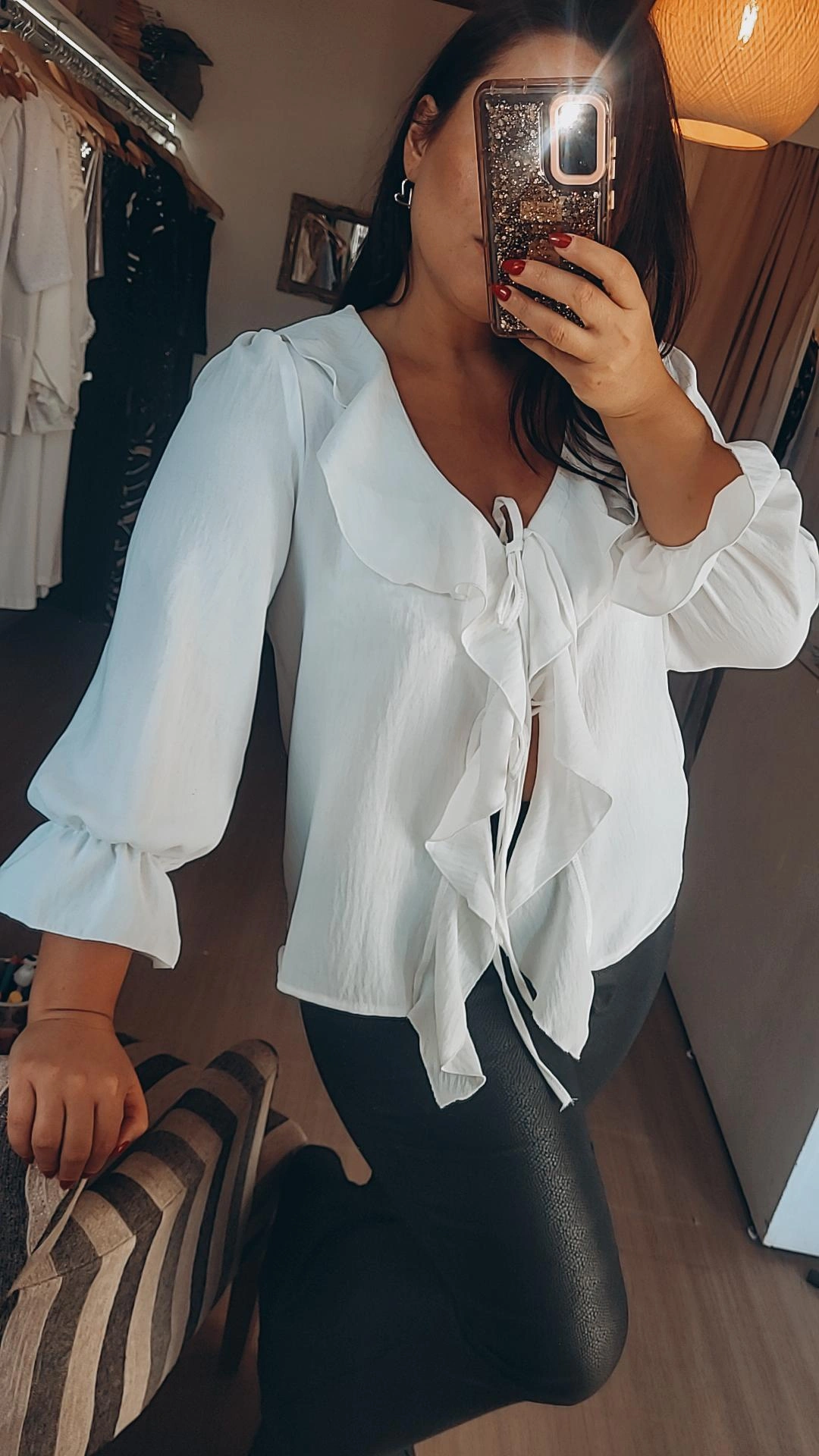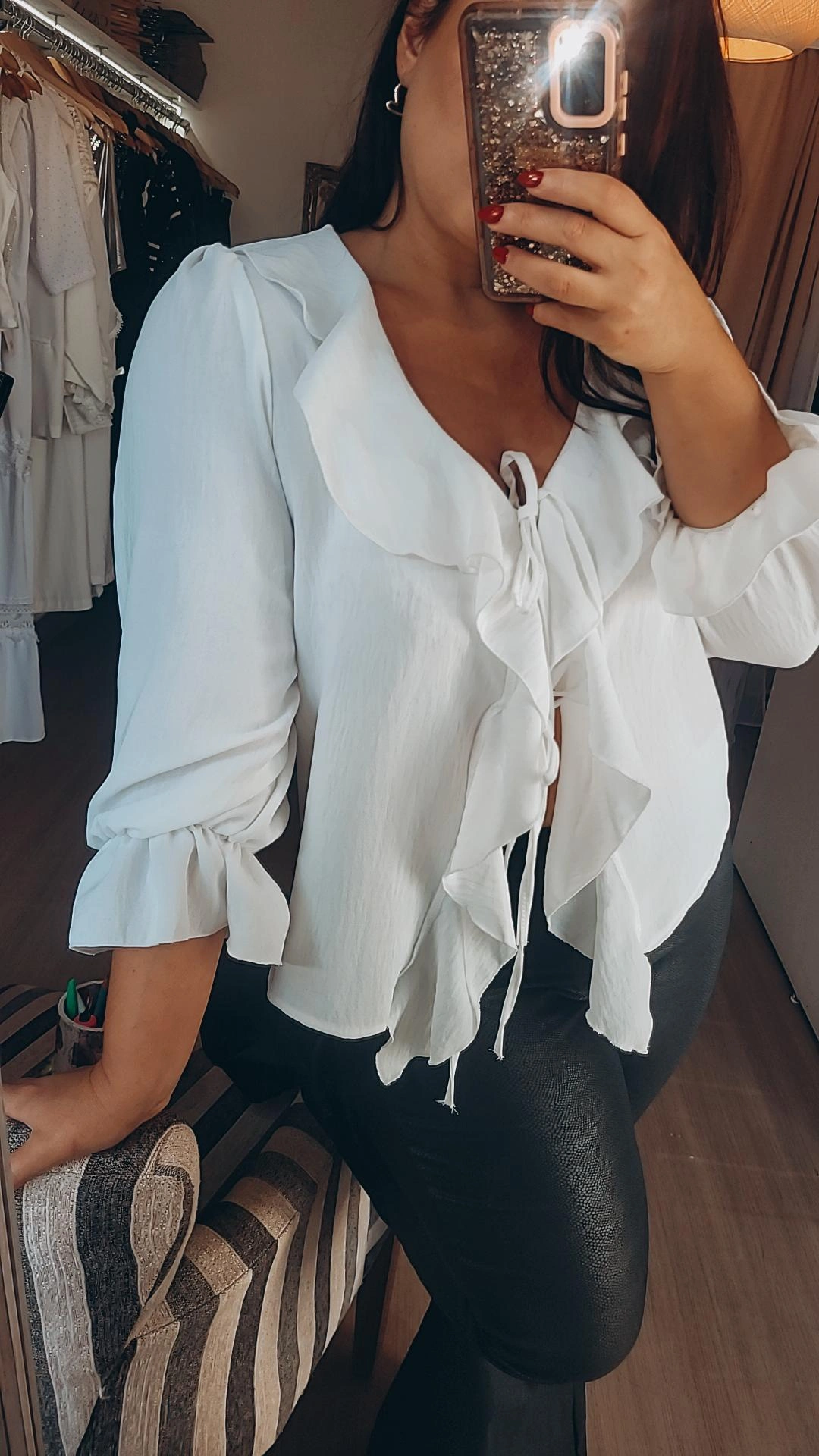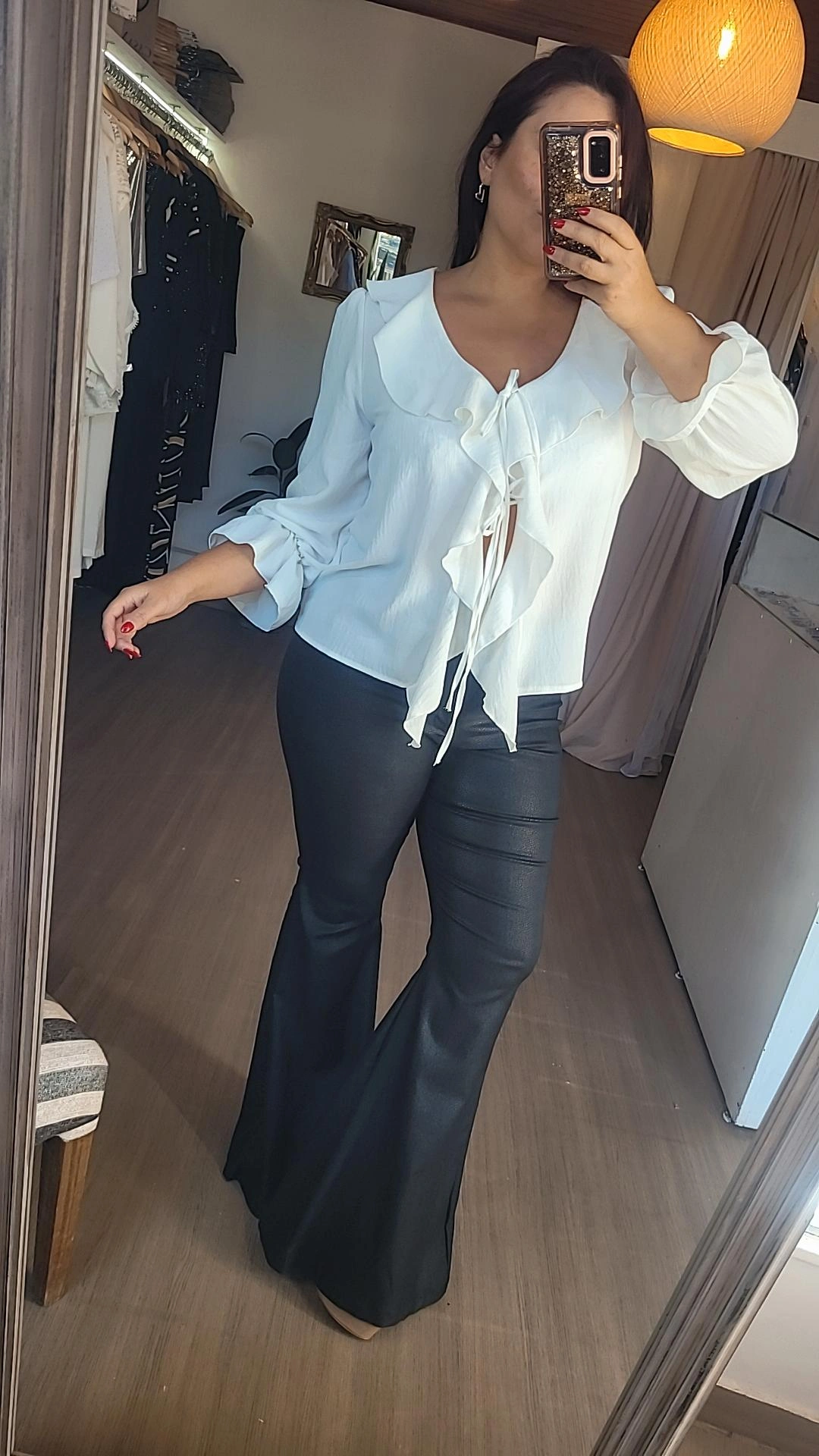 Camisola confeccionada en crep bambula color blanco, tela liviana y de caída suave. Presenta detalle de vuelos que aportan movimiento y un estilo femenino.