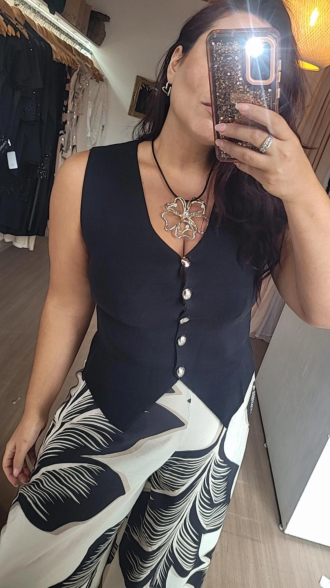 Chaleco importado de bremer tejido color negro, con terminación en V que estiliza visualmente el torso y botones color plata que aportan un contraste elegante y moderno. Puede usarse abierto o cerrado, adaptándose fácilmente a distintos estilos y ocasiones. Su calce entallado acompaña la silueta de manera sutil, logrando un equilibrio entre comodidad y sofisticación. Ideal para sumar capas a looks urbanos o elevar outfits más clásicos.