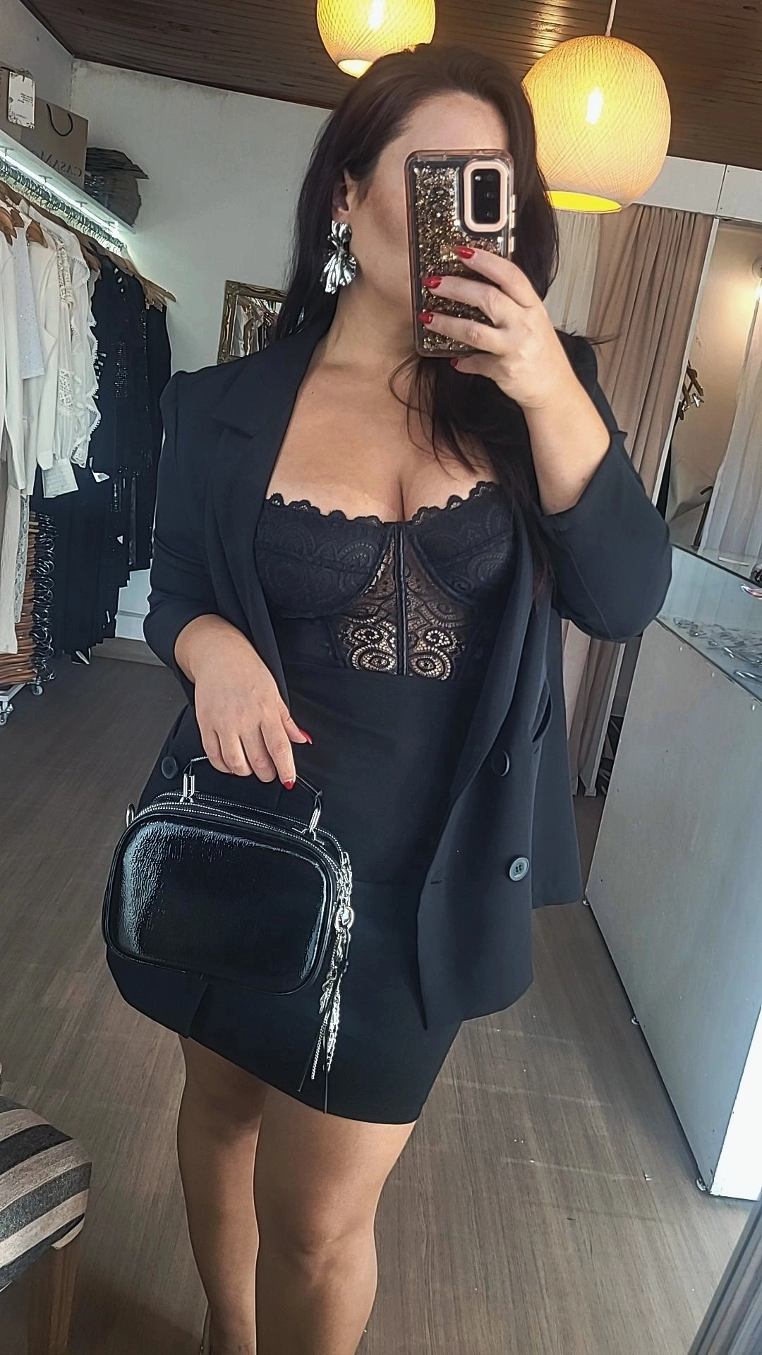El diseño resalta la figura con un calce estructurado que estiliza el torso, mientras que la combinación de encaje y microtul aporta ligereza visual y un aire femenino muy delicado. Su tono negro suma intensidad y elegancia, convirtiéndolo en una pieza ideal para looks nocturnos o para combinar con prendas sastreras y lograr un contraste moderno.