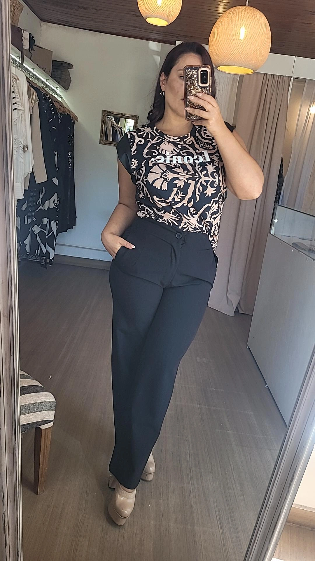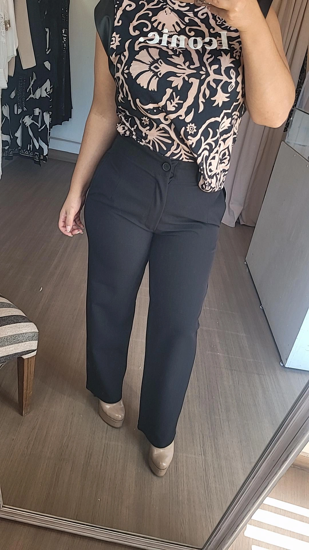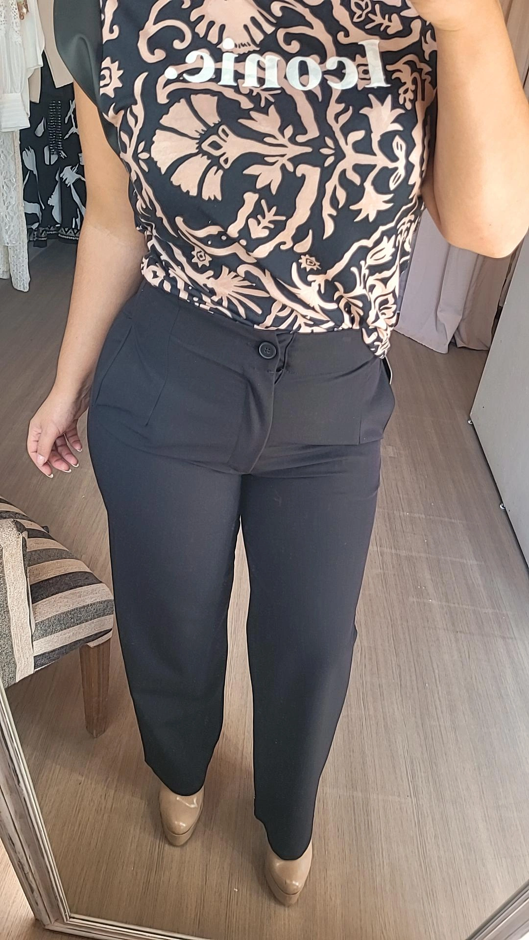 Pantalón palazo de líneas elegantes y caída fluida, diseñado para estilizar la silueta y aportar movimiento al caminar. Presenta pinzas delanteras superiores que favorecen el calce y bolsillos laterales que suman funcionalidad sin perder sofisticación. Una prenda versátil, ideal para combinar con blusas, camisas o tops y lograr looks tanto formales como relajados.