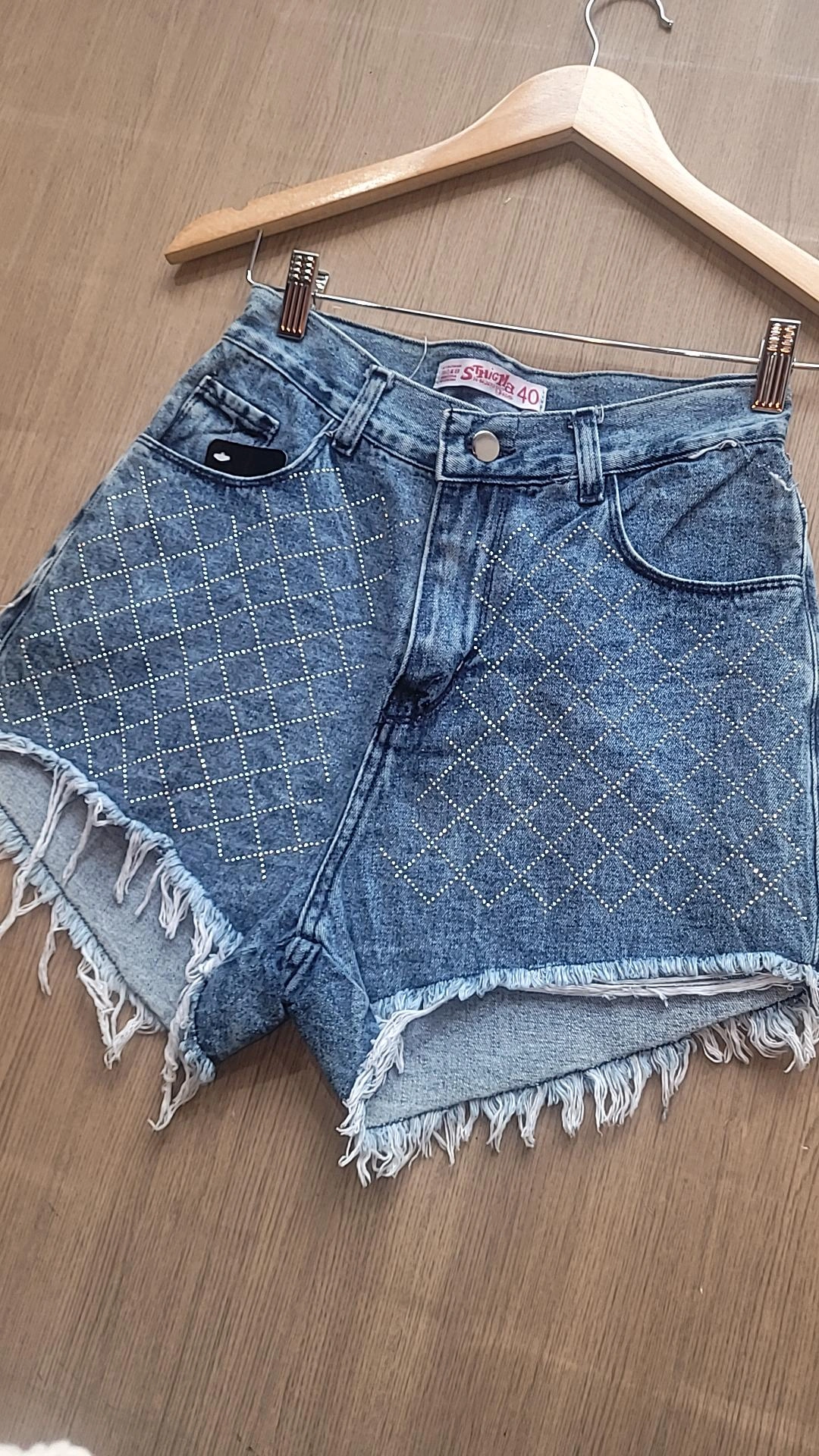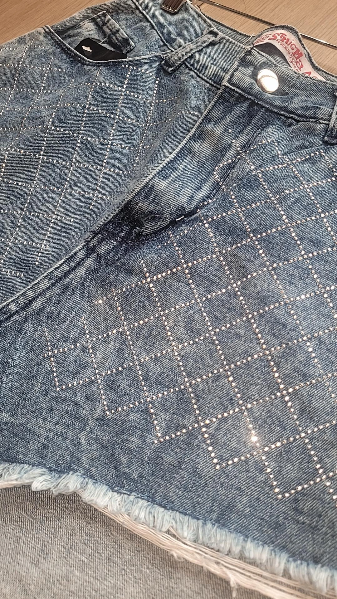 Este short de jean rígido es una prenda protagonista, ideal para sumar un toque canchero y glam a tus looks. Su diseño con strass en la parte delantera aporta brillo y personalidad, mientras que la terminación desflecada le da un estilo moderno y urbano.